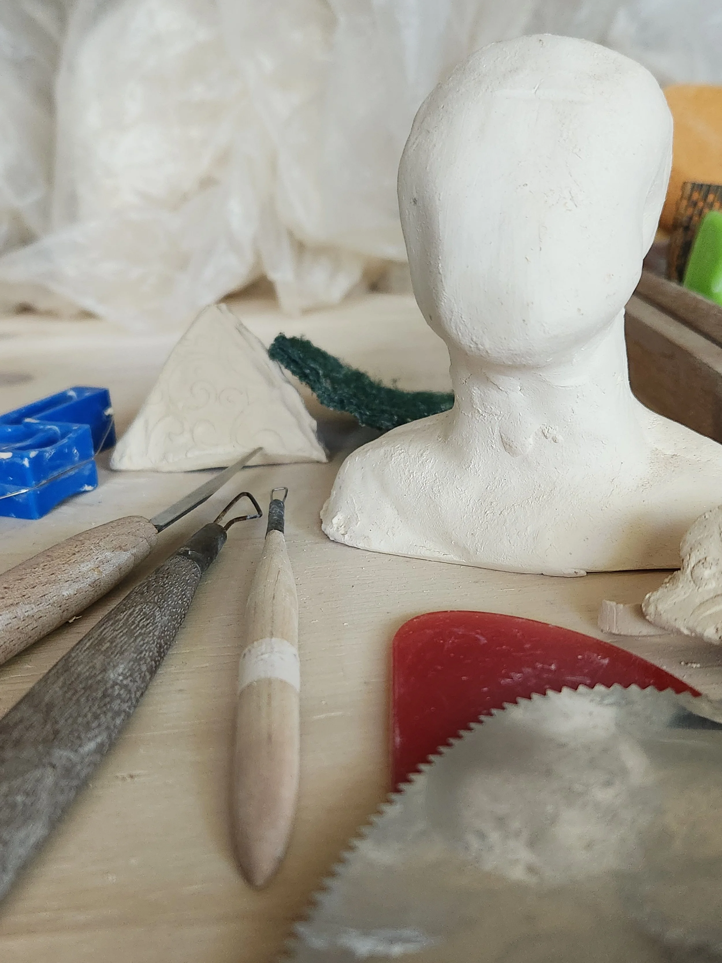 I paint with my eyes open, and I sculpt with my eyes closed. I came to be an artist late in life. I began drawing and painting in 2010. When I touched clay for the first time a few years later, I felt my heart open. I still love to draw and paint, to spend time with an object, a person, a scene, to see it as it is and to try to represent that truth. When I sculpt, something rises from within, reaching out to me. I sculpt from a well of images and emotion.